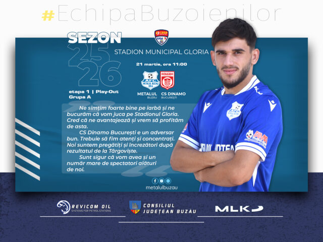 #preview Florentin Puiu înainte de meciul Metalul BuzăuCS Dinamo București Liga 2 | Play-Out Grupa A | etapa 1 Sâmbătă, 21 martie, ora 11:00 Stadion Municipal Gloria HAI, METALUL #EchipaBuzoienilor #aimhigh #workhard #si̇nce1954