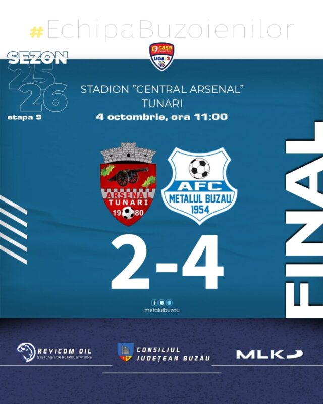 #final CS TunariMetalul Buzău– Liga 2 | etapa 9 Pentru Metalul Buzău au marcat: Valentin Robu min. 32 Alin Nica min. 34 autogol CS Tunari min. 75 Saim Tudor min. 83 HAI, METALUL #EchipaBuzoienilor #aimhigh #workhard #si̇nce1954